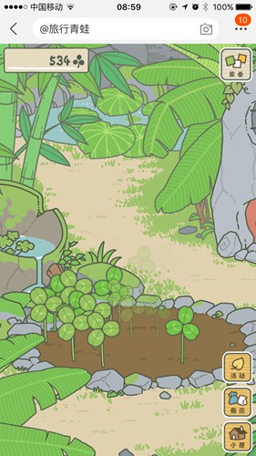 1、初入世界,你将驻守一方青砖小院,陪伴主角——一只爱翻古籍、常蹲檐角数云的文艺系青蛙。出发前需为其打包三类核心物资:充饥便当、护佑平安的符物、以及拓展见闻的随身道具。其中便当为必备项,而采购所需货币正是庭院中摇曳生长的三叶草。轻点右下角“庭院”图标,即可步入你的耕作天地。
