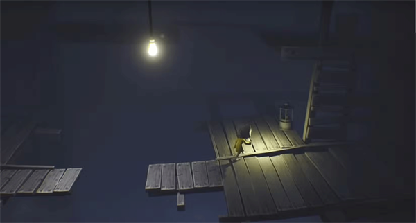 游戏始于一只敞开的旧皮箱,Six从中缓缓坐起。随身唯一的光源——打火机,将成为你黑暗中最重要的伙伴。向左前行,你会遇见第一盏悬垂的灯笼。点亮它不仅带来光明,更会自动存档——请务必珍惜每一处可交互的光源。