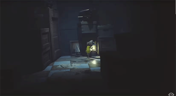此房间内,一把空椅悬着男人的脚。拖动椅子至门前,借力跃起抓住门把,推开禁锢之门。进入后,直面一台老旧冰箱——拉开它,一只诺姆倏然窜出,引你奔向右侧墙洞。