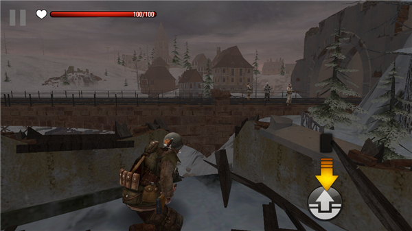 1、启动游戏后,跟随剧情动画进入教学关卡。当角色抵达掩体时,轻触屏幕上方区域,人物将自动起身进入警戒射击姿态;
