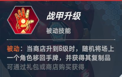 能量核心:被动,升级商店时,发现一张价格不高于本次升级花费的斯塔克工业卡——象征方舟反应炉为整个工业体系提供稳定能源。