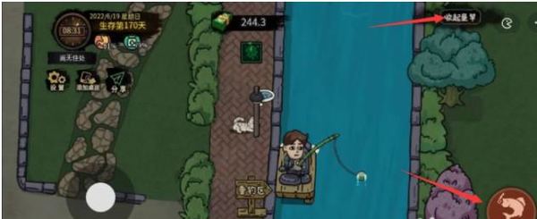 2·随后我们就前往河边,在适当的时候放竿,等待页面上方出现“收起鱼竿”的字样,我们快速点击“收竿”。