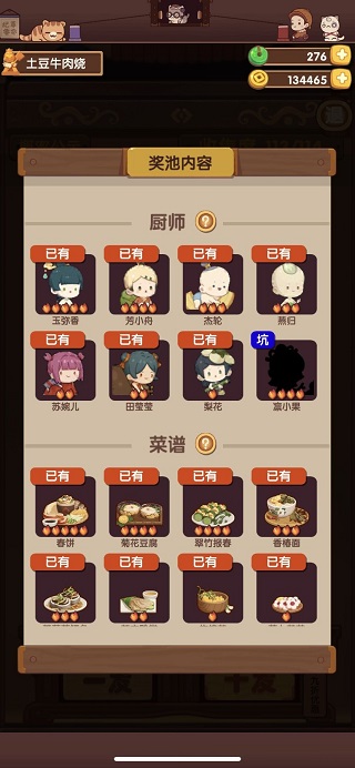 (2)59关要求35道菜谱,此时可用番茄肥牛快速敛财,同步抽取新手池扩充阵容;
