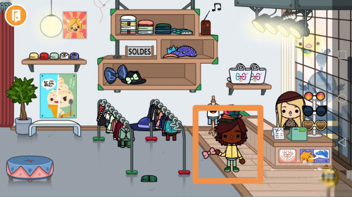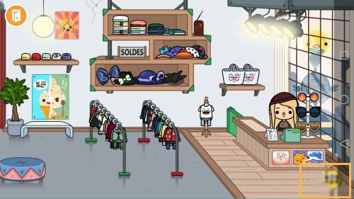 3、步入商场内部,琳琅满目的衣架与试衣镜映入眼帘,点击右下角闪烁的“换装魔盒”图标;