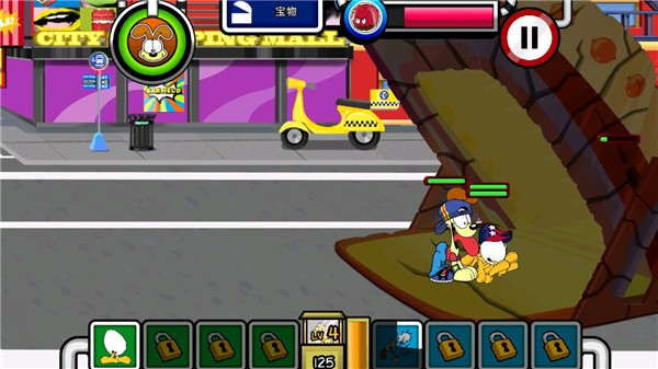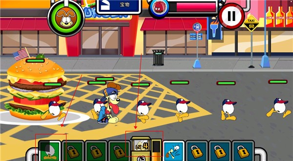2、加菲猫可以利用爆米花来召唤战友和吐西瓜籽的绝招。点击屏幕下方的工具槽即可使用技能和召唤战友,但是需要爆米花数量足够才能成功召唤。
