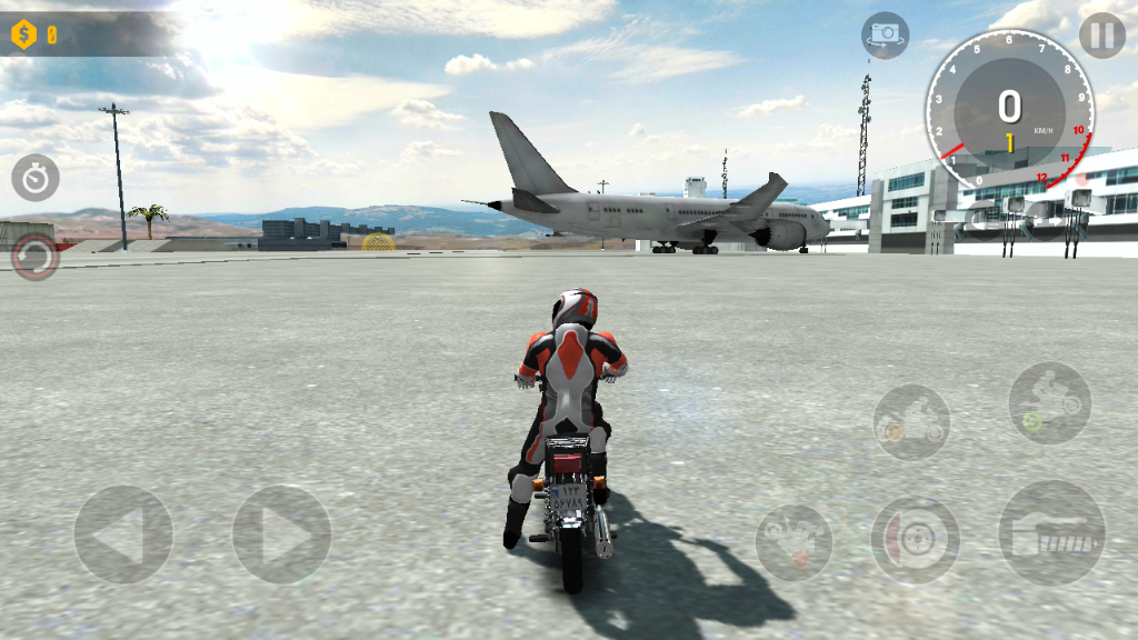 6、操控采用双区域布局:左侧虚拟摇杆控制转向角度与倾斜幅度,右侧按键集成了油门、刹车、特技触发及跳跃功能;