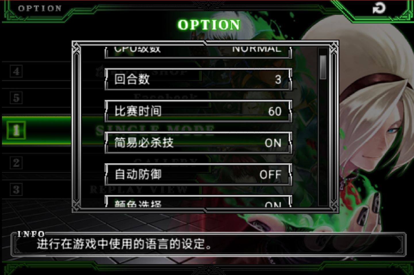 3、用虚拟控制器实现熟识的KOF操纵。即使是不善于格斗游戏的玩家,只要按一按就能使出指令复杂的必杀技和超必杀技,真超必杀技等招式