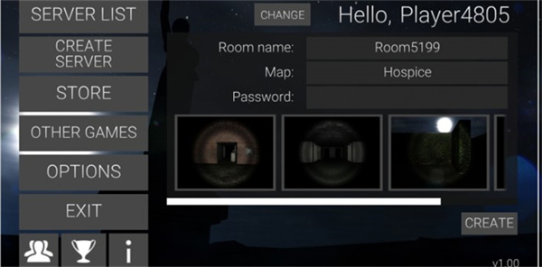 1、启动后首先进入中央枢纽大厅,点击“创建密室”设定难度参数(如实体感知阈值、环境干扰强度),右侧“装备工坊”支持预购战术道具。