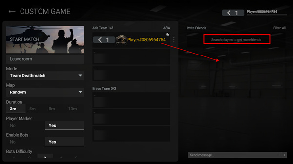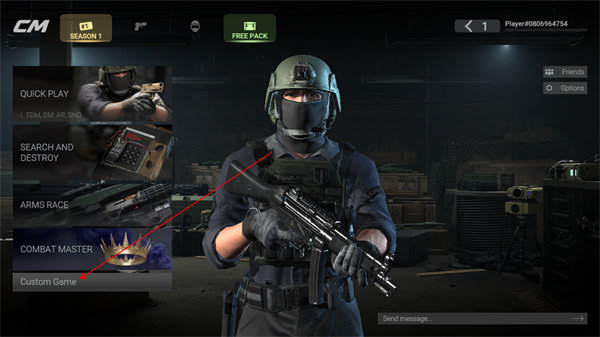 3、返回首页,选择【Custom Match】(自定义对战),创建专属房间并设定规则;