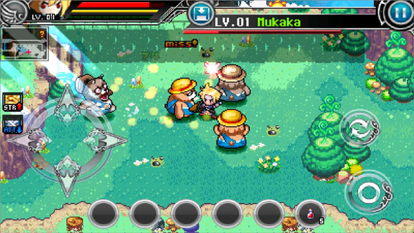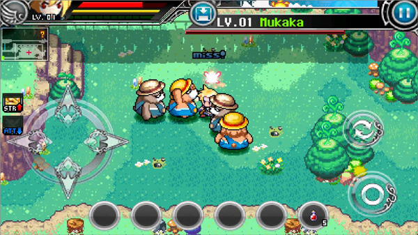 本作延续系列标志性的复古像素艺术风格,以明快色调、圆润Q版角色与细腻场景动画营造出兼具怀旧感与鲜活生命力的世界观。界面设计高度人性化:左上角实时显示生命值、经验条、迷你地图与一键存档功能;昼夜系统动态流转,光影随时间推移自然更迭,让每一次探索都充满沉浸式节奏感。即刻启程,踏入这场重燃热血的奇幻之旅!