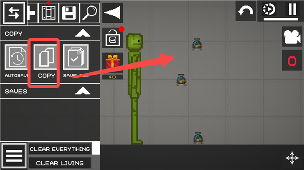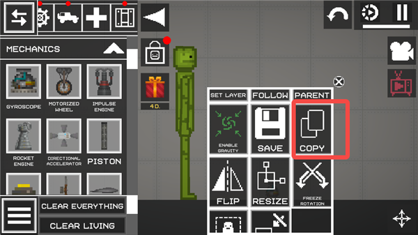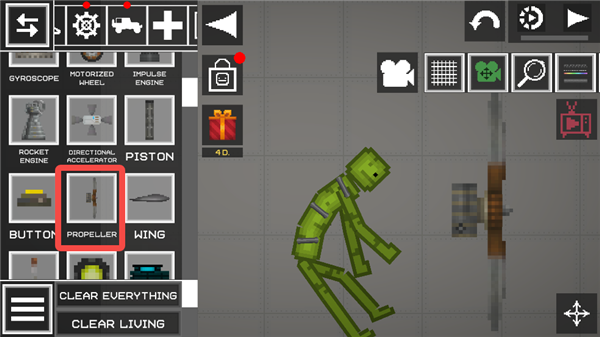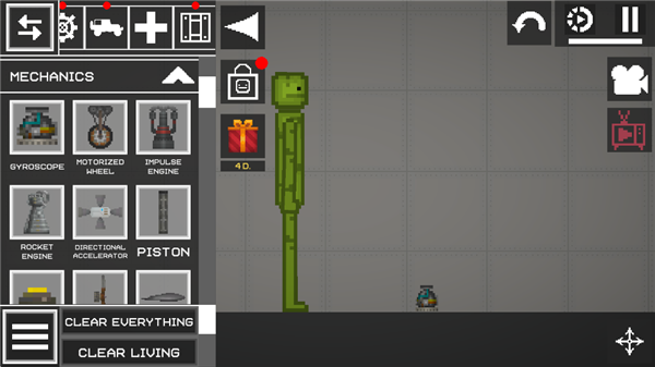 1、进入甜瓜游乐场最新版本,拿出一个西瓜人和拿出一个陀螺仪。