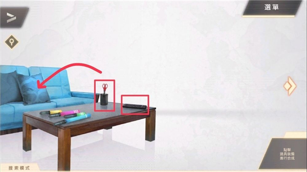 ③ 进入左房间,拾取桌面「剪刀」「遥控器」