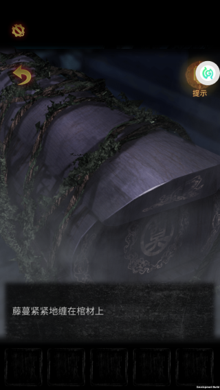 6、返回棺木处,长按刀具图标激活“破缚”动作,连续三次精准点击藤蔓节点,伴随木质撕裂音效开启棺盖