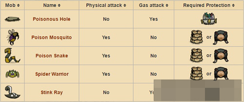 会攻击的怪物:高鸟怪、红色蜜蜂、蛇、蜘蛛、鱼人。