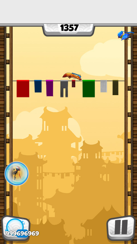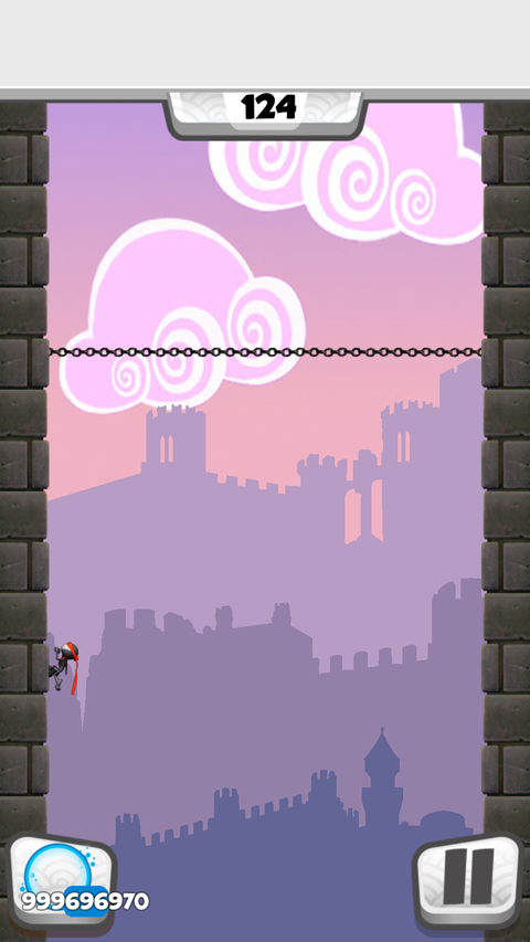 核心操作仅需单指:向左滑动屏幕左侧区域,忍者即刻贴墙左移;向右滑动右侧区域,则向右跃升。关键在于预判障碍轨迹、把握蹬踏时机,在高速移动中维持节奏平衡——爬得越高,积分倍率越强。