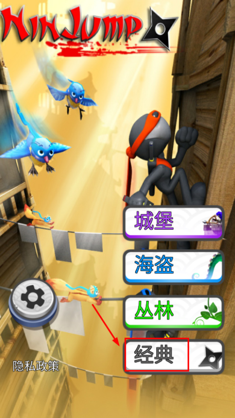 忍者跳跃经典版怎么换情景