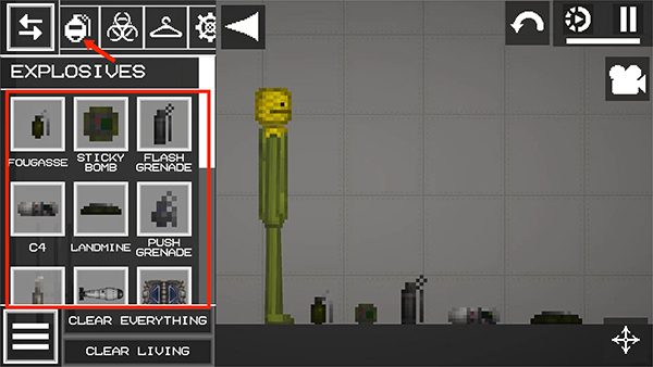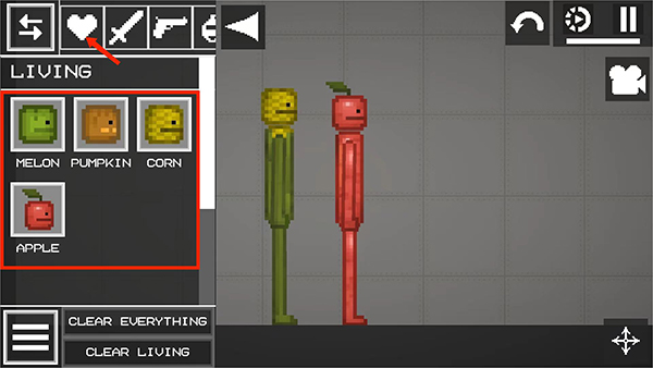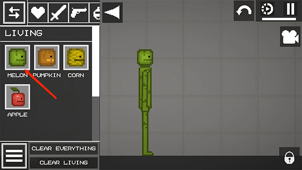 游戏内置四大可操控角色:西瓜人、南瓜人、玉米人与甜瓜人,每个角色都拥有独立的物理特性与互动逻辑。上百种可交互物件任你调遣:从冷兵器(宝剑、战斧、流星锤)到热武器(手枪、霰弹枪、激光步枪),从载具组件(轮胎、引擎、方向盘)到环境道具(木箱、弹簧、磁力板)、防护装备(防弹衣、战术头盔)乃至特殊效果装置(毒雾罐、重力发生器、推进器),所有元素均遵循真实感2D物理规则,让每一次尝试都充满不可预知的趣味性。