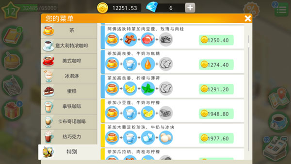 全游戏共设9大风味体系,涵盖经典茶饮、意式浓缩衍生款、美式变奏、冰品甜点、烘焙主食、拿铁创意、卡布奇诺升级、热巧焕新及限定香料特调。以下为各体系核心配方解析(注:所有配方均经实测验证,适配当前版本逻辑):
