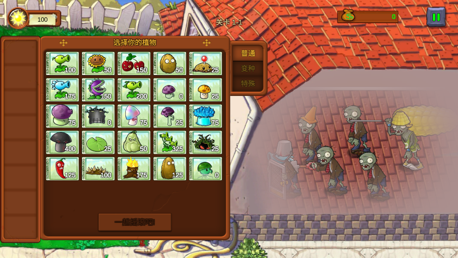 3、在开始游戏之前选择好自己的植物,注意看有哪些僵尸。