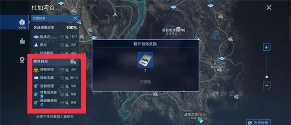 首要条件:地图左侧面板中所有额外目标必须达成绿色完成态(含隐藏进度),奖励将在最终目标结算时自动发放。