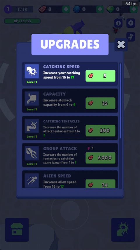 5、消耗已储存的生物质资源,定向提升移动速度、吞噬范围、抗打击强度等核心属性