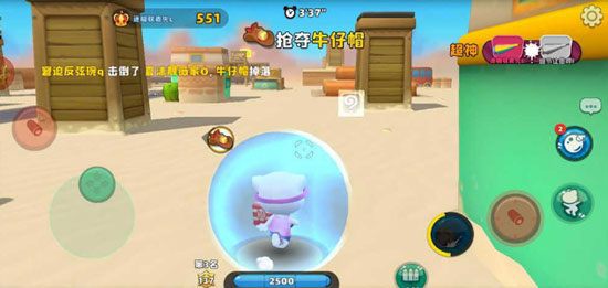 2、**牛仔对决**:8人自由混战。单局内率先累积800分者胜出,每次击杀得100分,被击倒则分数清零。排名前3名奖励递增,尤其榜首可获大量奖杯。