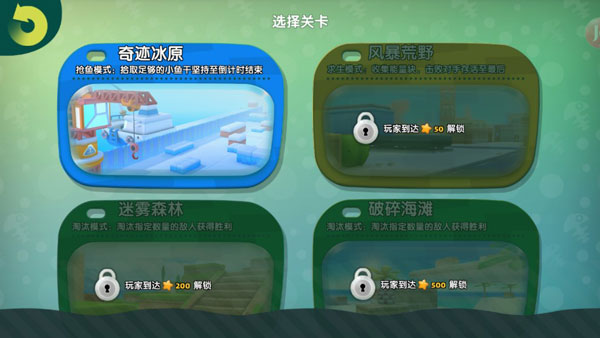1、**奇迹冰原** 抢鱼模式:搜集散落小鱼干,守护己方鱼篓直至倒计时归零。