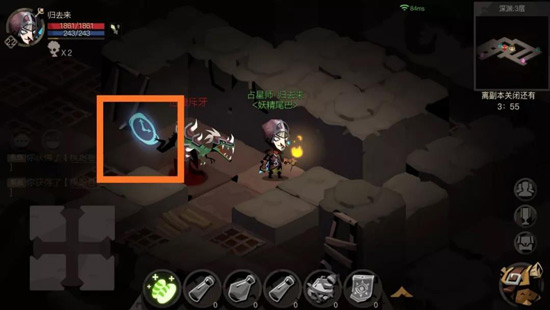 6、深渊里有一个如图的道具,在地图上和法阵是一样的标志,可以延时一分钟,总时间可以超十分钟,例如九分四十秒吃了一个道具,就会变成十分四十秒。