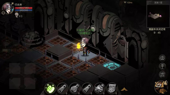 5、时间在地图下面,时间到了的话,可以继续游戏,也可以继续下楼,但不能进下一个五层,一到五层,六到十层这样为一个阶段,每下到新的一个五层,时间就会重置到十分钟。