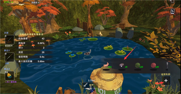 1、来到鱼塘旁,选择鱼饵以及诱饵