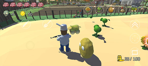 植物大战僵尸戴夫有枪手机版是一款经典塔防游戏的全新3D自制复刻版,简称为PVZ_TPS,玩法操作直观易上手,玩家将化身农场主戴夫,在立体场景中通过虚拟摇杆自由移动,灵活走位并使用手中多种武器精准射击从四面八方涌来的僵尸群。
