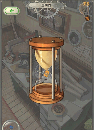 6、S区桌面静置一座沙漏,点击后将设备竖直倒置数秒,内部流沙异动后浮现一把金黄色钥匙轮廓;随后轻点沙漏本体使其碎裂,钥匙正式入手: