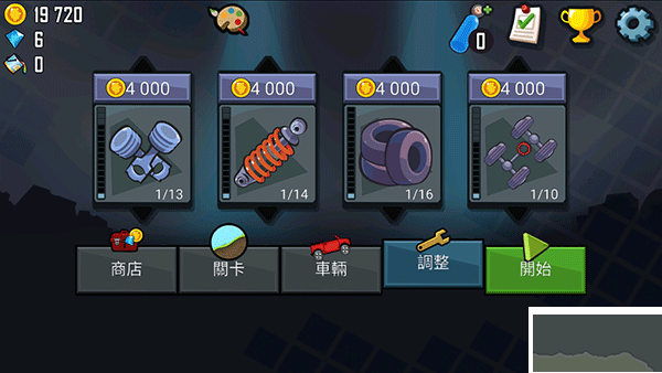 6、在关卡中收集的金币奖励可以升级自己的赛车引擎,增加赛车的性能;