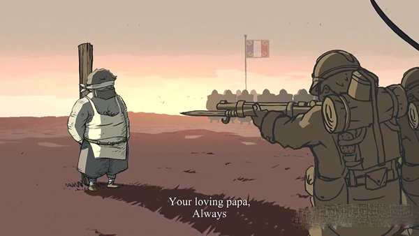 1、信纸展开,画面渐变为艾米欧走向刑场的背影。旁白是他写给女儿的最后一段独白。
