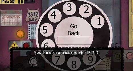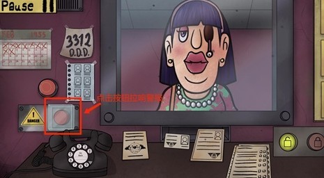 1、遇到伪人后,点击左下角的红色按钮拉响警报,D.D.D公司的电话在左边的墙上会显示。