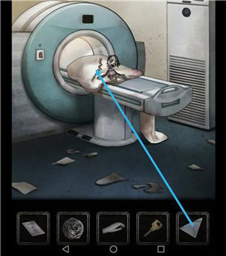 3、在2011病房用石块击碎镜面,拾取锋利碎玻璃;返回检查室,用其划开金属观察窗密封胶条。