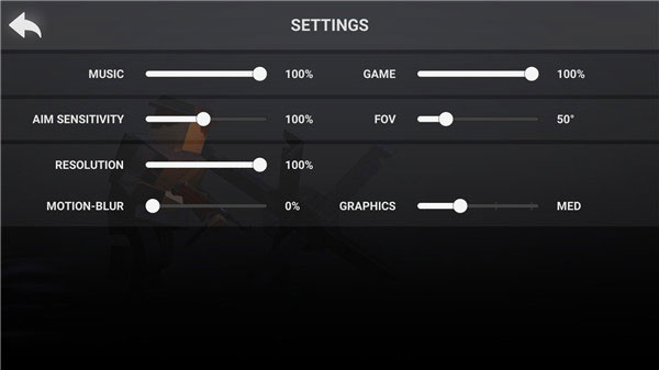 3、通过settings调整音效强度、灵敏度、画质选项等个性化参数;