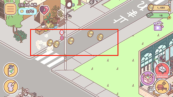 3、随着指尖划过,瓶子自动收入清洁袋,同时叮咚一声弹出金币奖励——干净的街道,也是成长的足迹