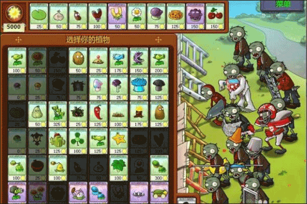 1、开局拥有5000阳光,且每过一波后获得250阳光、可以提前摆阵,植物无冷却,这样可以使阵容快速成型了,但不能选择向日葵、阳光蘑菇和免费的2种蘑菇。僵尸防御高的有铁桶、橄榄、铁珊门。大家可以按照小编下图植物选择,为了赚金币,缺一不可。