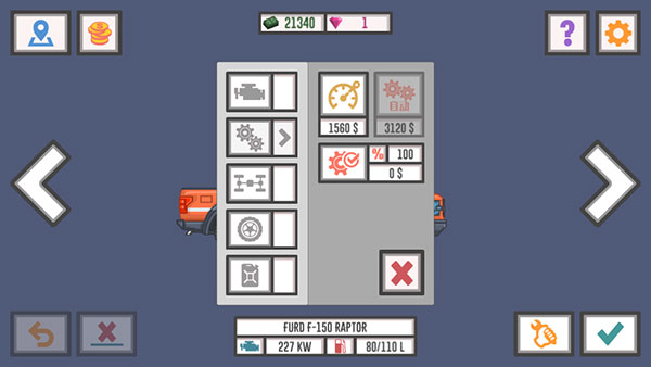 4、支持升级引擎功率、强化悬挂系统、更换低滚阻轮胎、加装燃油效率模块等,部分项目需等待冷却时间,亦可用金币跳过。