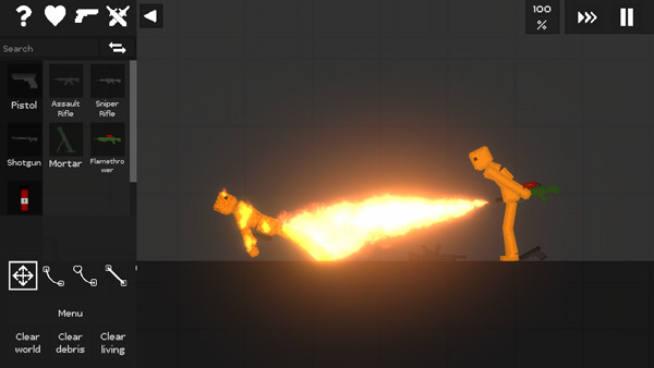 你可以搭建一台自动投石机,设计一辆带履带的雪地巡逻车,甚至复刻一座微型蒸汽朋克钟楼;也能为布娃娃角色装配战术装备,设定AI行为逻辑,让它们在动态环境中展开智趣对抗或协同协作。不设任务引导,没有通关压力,一切由你定义规则:是专注机械结构的精密推演,还是享受角色失控翻滚的荒诞喜剧?亦或干脆静观火焰舔舐橡胶、电流跃迁导体、爆炸冲击波推倒积木塔的微观物理奇观?本作在开放性维度上全面突破同类产品边界——地图非线性拓展、隐藏机制层层嵌套、玩家共创内容深度兼容,真正实现“你的世界,由你重写物理法则”。即刻启程,开启属于你的沙盒哲思之旅。