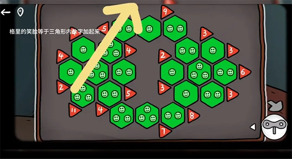 三角形边框旁延伸的网格格子中,数字之和并非直接相加——需将垂直延伸方向上的数字视为“权重”,乘以其所在行距三角形顶点的距离值后再求和,结果才等于三角形内数字。