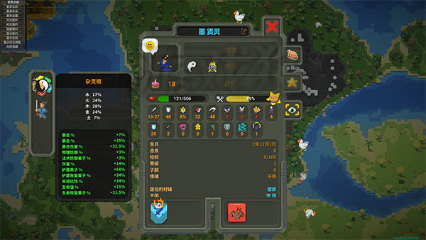 3、并且点击放置的人类还能看到详细的面板,这里可以看到是个杂灵根没有培养的价值。