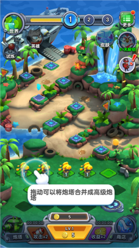 2、购买两个同等级的炮台拖动即可合成一个高等级炮台