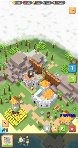 开局建议:优先建立“粮田-矿场-伐木场”三角供给链,同步在要冲位置修建两座哨塔形成交叉火力网。兵营宜靠近资源点布局,缩短士兵往返时间。