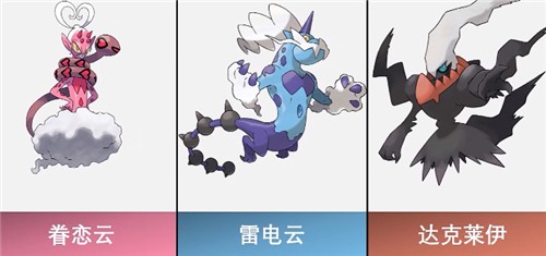 T1:眷恋云、雷电云、达克莱伊、骑拉帝纳、席多蓝恩、洗翠黏美龙、烈咬陆鲨