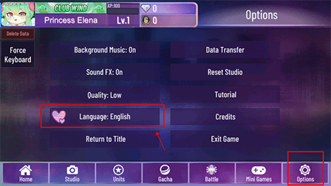 1、进入游戏内“options”设置页面,找到“language”。