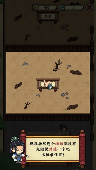 开局先筑根基——点击空地进入营建界面,优先建造「青石木桩场」。这是最朴实却最扎实的入门训练场所,也是日后万千弟子叩响武道之门的第一块基石。
