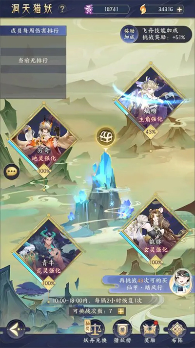 此外,洞天猎妖每日挑战次数定时刷新,推荐在12:00–14:00或18:00–20:00双倍奖励时段集中挑战,效率翻倍。