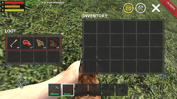 3、然后掏出武器,点击瞄准即可开火(一般都是石斧,想要其它武器需要自己打造);